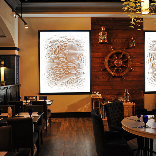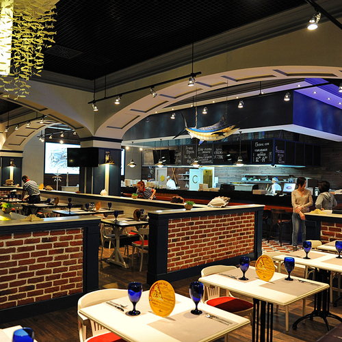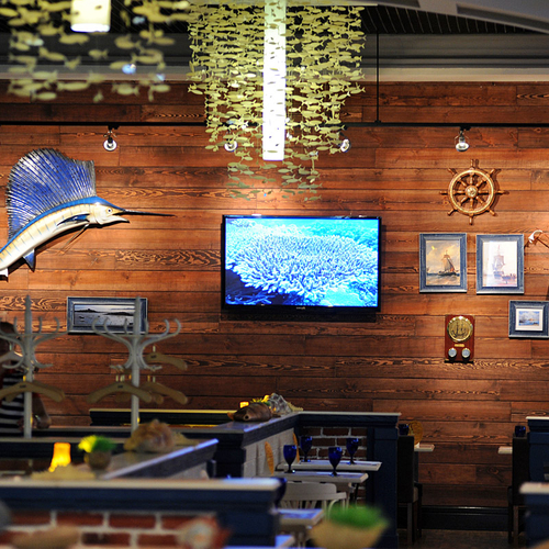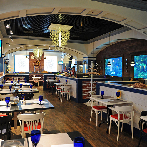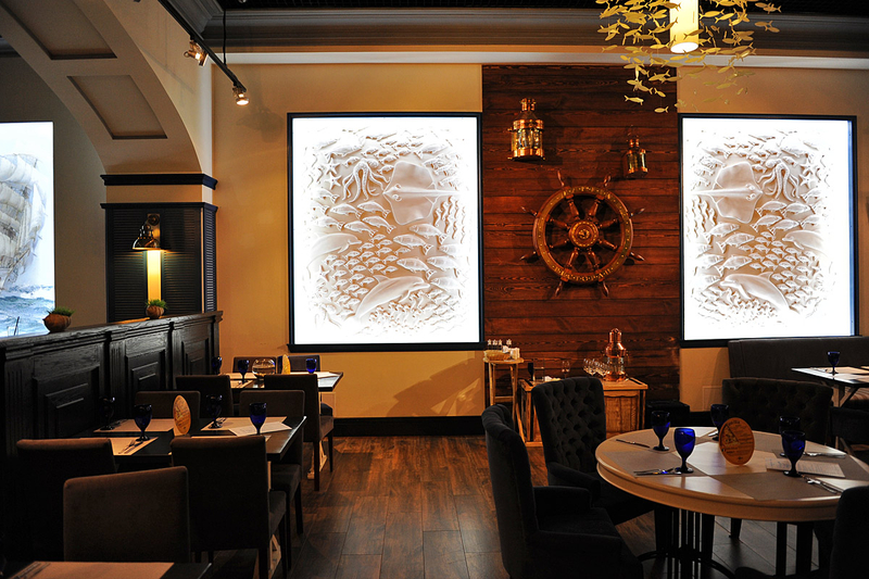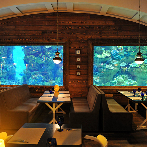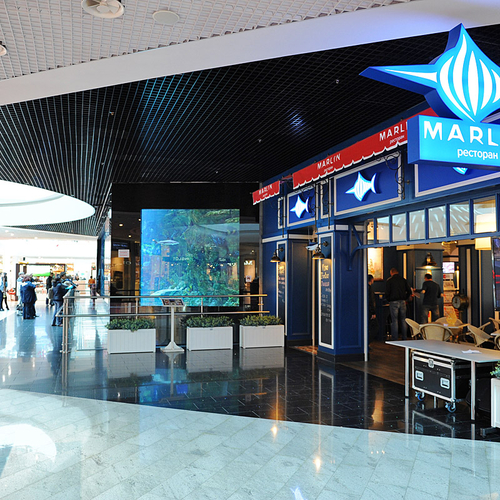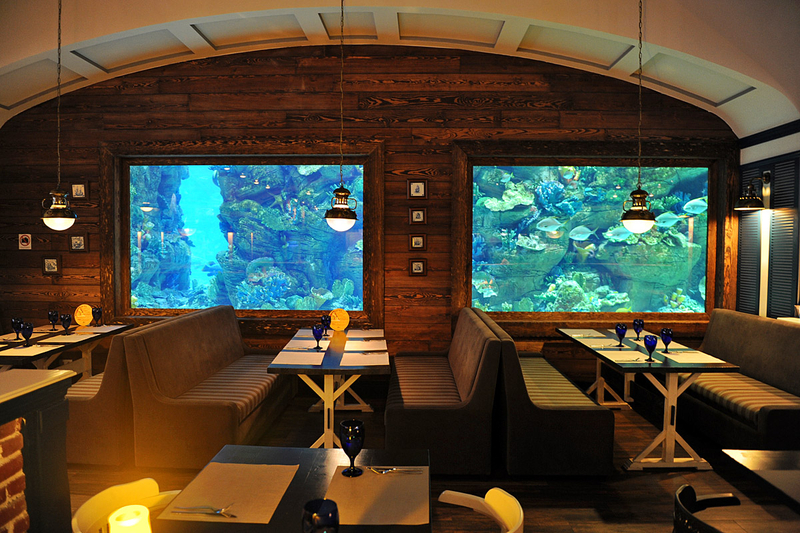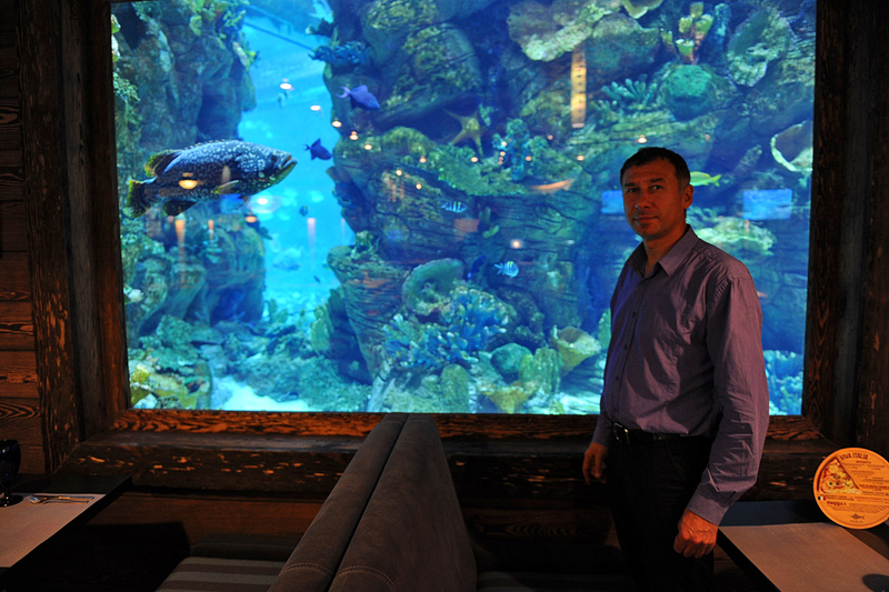 К слову, мастер-классы проходят в уютном ресторане Марлин. Заведение, расположившееся в ТРЦ Ocean Plaza, находится за знаменитой стеной-аквариумом, которая привлекает внимание всех посетителей шопинг мола. Сидя за одним из столиков ресторана, находящихся прямо у морского аквариума, можно отдыхать часами, рассматривая всех его обитателей. Вот и наши победители не стали исключением из правил и проявили неподдельный интерес к жителям морских глубин.