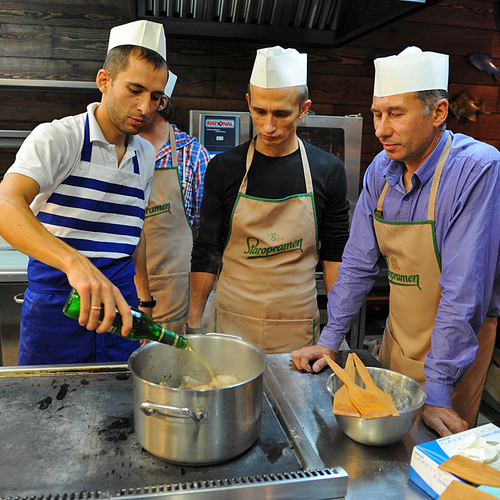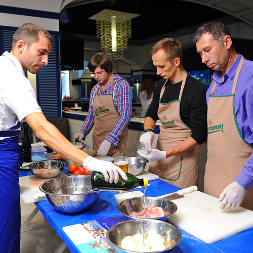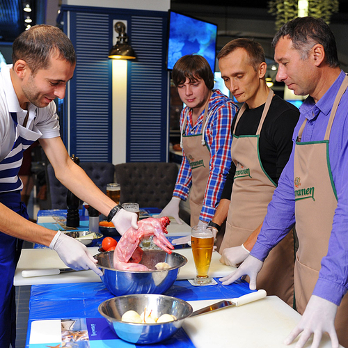 Торговая марка Staropramen начала раскрывать секреты приготовления вкусных блюд на основе пива. На первом мастер-классе шеф-повар Алексей и су-шеф ресторана Марлин Геннадий поделились с победителями нашей увлекательной викторины рецептами настоящих мужских блюд