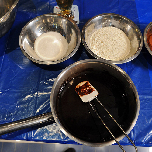 1. Растопить на водяной бане черный шоколад и сливочное масло.