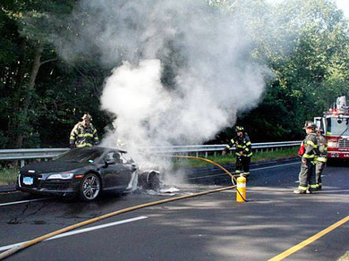 Авария произошла в городе Фейрфилд, штат Калифорния. Рауль Патель ехал на своем новеньком автомобиля, когда в зеркало заднего вида заметил дым, исходящий из моторного отсека. Как только победитель Connecticut Powerball вышел из машины, дорогой суперкар Audi R8 вспыхнул.
