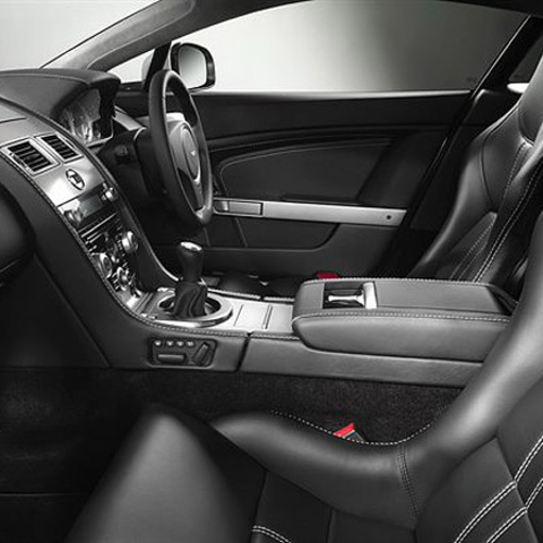 В салоне Aston Martin V8 Vantage появились легкие спортивные кресла, установка которых позволила сократить массу авто на 17 кг. Также в качестве опции для Aston Martin V8 Vantage можно заказать аудио систему Bang & Olufsen.