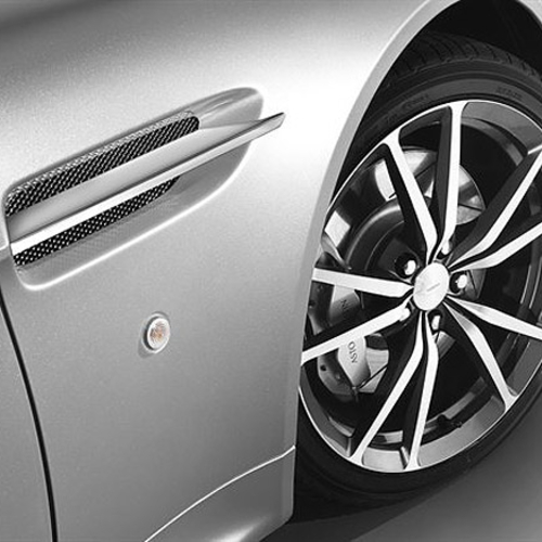 От предыдущей версии Aston Martin V8 Vantage новинку можно отличить по новым 19-дюймовым 10-спицевым легкосплавным дискам. В тоже время специальный окрас кузова, накладки на пороги и прозрачные задние фонари можно заказать в качестве опции.