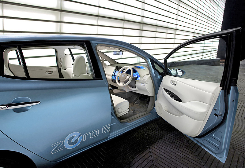 Официальная премьера Nissan Leaf состоялась в августе 2009 года. Под капотом у автомобиля установлен электромотор мощностью 109 л.с. На одном заряде литий-ионных батарей электрокар может преодолеть около 160 км, а восполнение заряда занимает около 8 часов от обычной бытовой розетки.