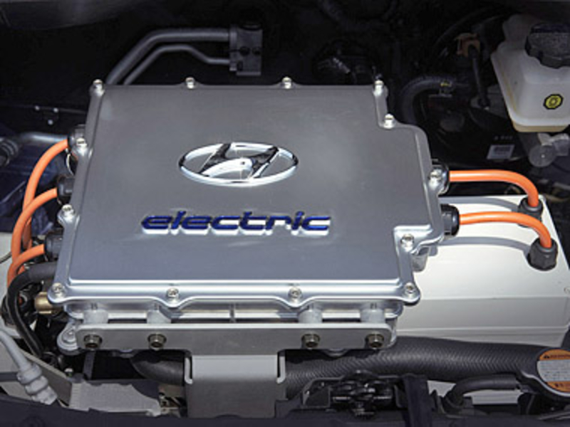 Электромотор i10 Electric питается от литий-полимерной батареи, которая на 20% компактнее современных литий-ионных аккумуляторов. Именно благодаря использованию новой батареи, вес автомобиля не вышел за пределы 1000 кг. От обычной бытовой розетки аккумулятор заряжается около 5 часов, а от промышленной сети и того меньше - 85% заряда за 15 минут.
