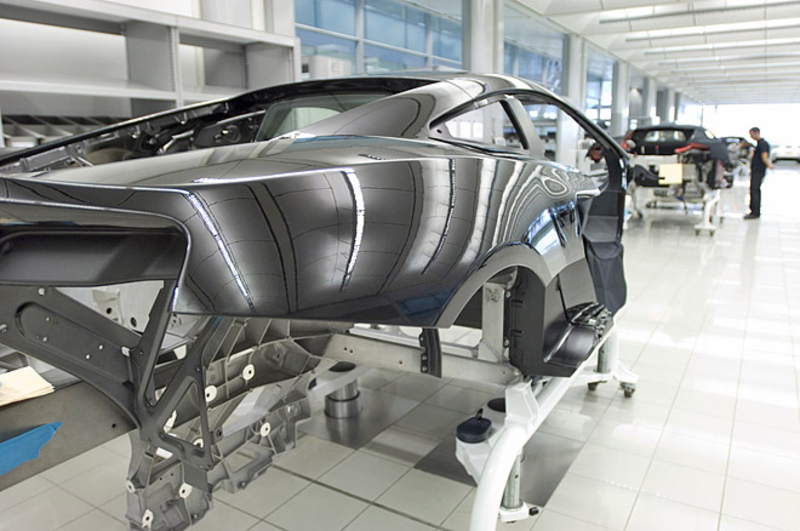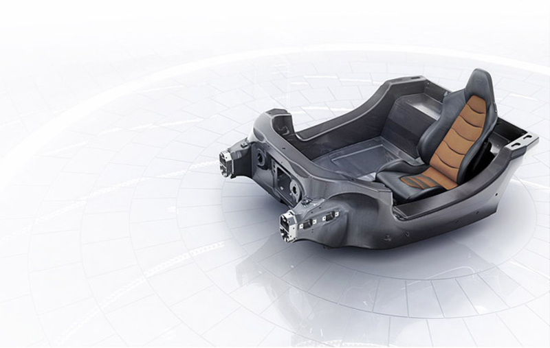 Во время постройки кузова инженеры McLaren использовали множество деталей из карбона и алюминия. Благодаря этому масса McLaren MP4-12C составляет около 1300 кг. Новинка получила полностью карбоновый монокок, кроме того специалистам удалось достичь почти идеальной развесовки по осям.