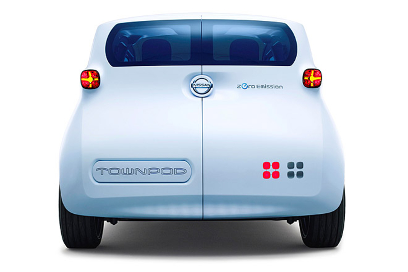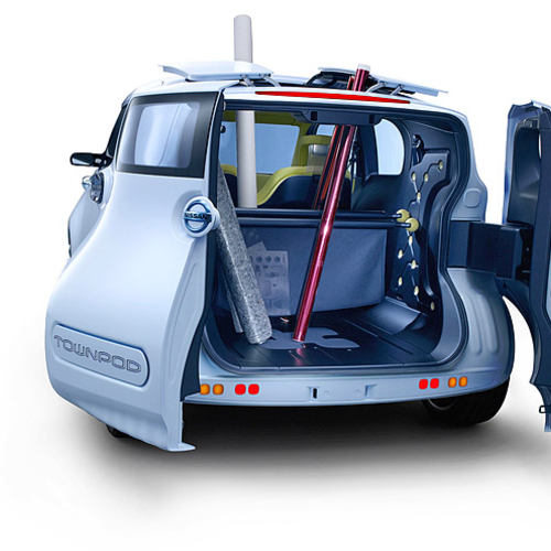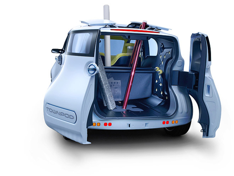 Задняя часть концепта Nissan Townpod не менее оригинальна. Кроме того, что корма получилась непропорциональной, в стиле модели Cube, так еще задние двери открываются в противоположную сторону, а над головами задних пассажиров можно раскрыть лючок.