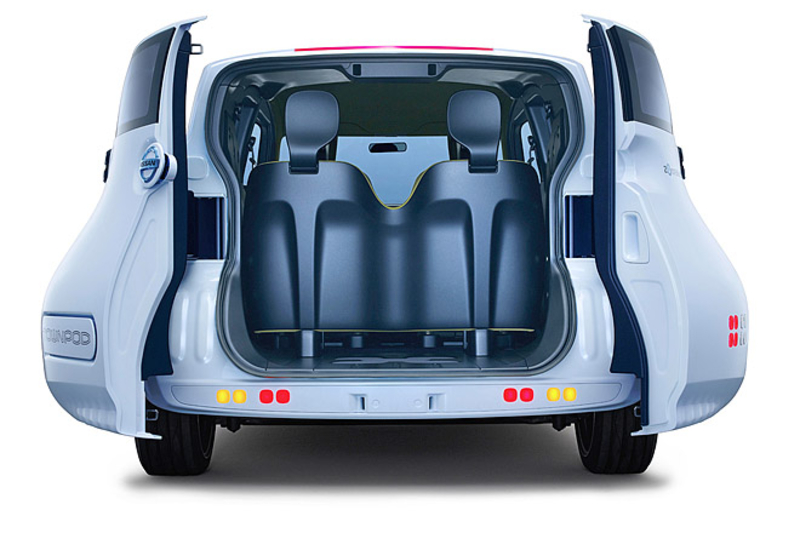 Под капотом у Nissan Townpod разместилась знакомая по Nissan Leaf электрическая силовая установка.
