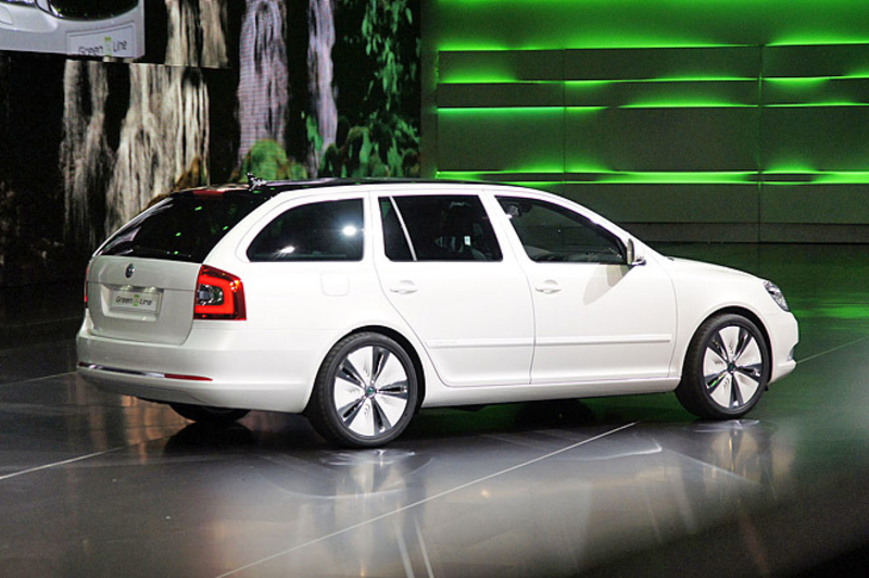 Несмотря на кузов повышенной вместимости и соответствующие требования к мощности, электрический универсал Skoda Octavia Green E Line получил электромотор мощностью всего 114 л.с., питающийся от комплекта литий-ионных батарей.