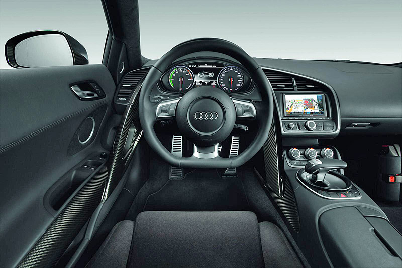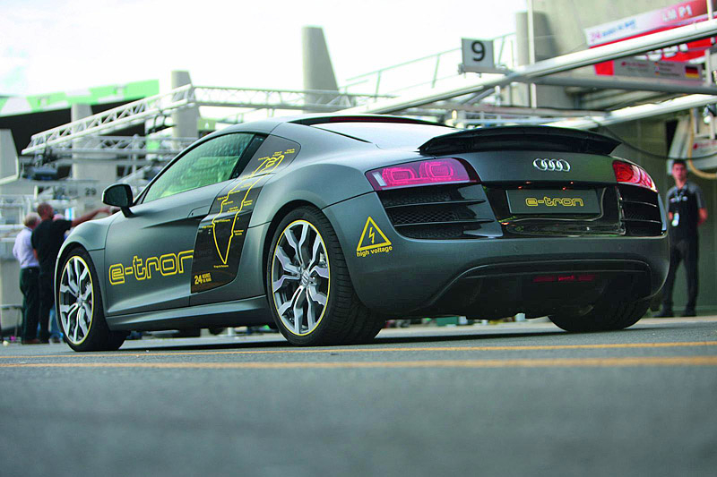 Блок литий-ионных батарей с жидкостным охлаждением будет расположен сразу за пассажирским отсеком. Благодаря этому удастся сохранить почти идеальную развесовку по осям 42:58, идентичную версии Audi R8 с бензиновым мотором 5.2 FSI.
