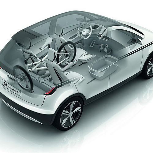 Салон рассчитан на четырех пассажиров, а между задними сидениями можно установить специальные крепления для велосипеда. Всеми функциями Audi А2 можно управлять с сенсорных дисплеев. Их два: один находится на приборной панели за рулем, а второй - справа от водителя.