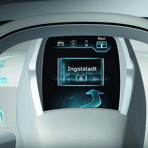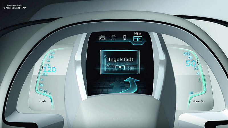 Вдоль борта Audi А2 проходит полоска "динамического света", которая пульсирует во время движения и показывает габариты авто. При торможении полоска красного света пробегает вдоль борта в сторону капота, демонстрируя интенсивность замедления.