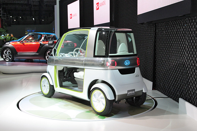 Компания Daihatsu привезла на мотор-шоу в Токио двухместный электрокар PICO, который она позиционирует как соединяющее звено между мотоциклами и автомобилями.