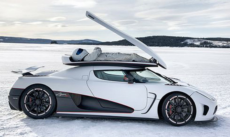 В Koenigsegg нашли выход из такой непростой ситуации. Специально для суперкара Agera R шведы сделали съемный багажник на крышу машины. Есть правда у этой штуки два небольших минуса. Первый, стоит бокс для лыж около $27 тыс. Второй, с багажником на крыше нельзя ездить быстро - максимум 300 км/ч. А ведь так хочется разогнаться до паспортных 418 км/ч где-то высоко в горах!