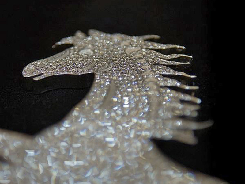 И у итальянцев такая есть. Ferrari Opus Enzo Diamante - 1500 бриллиантов на гарцующем жеребце, подписи всех живых чемпионов мира, выступающих за Ferrari. Только одна копия такого опуса может быть продана в одной конкретной стране мира. Были бы желающие! Цена, мягко говоря, кусается - почти $275 тыс.