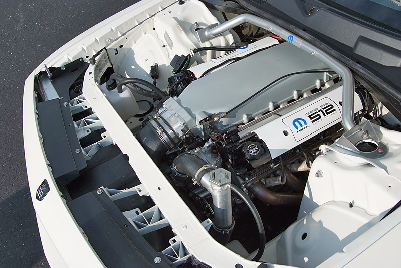 Покоритель прорезиненного асфальта создавался совместно с подразделением Mopar, а полное название тюнинг-пакета - Mopar Challenger Drag Pack. Основное отличие суперкара от стандартной модели - мотор V10 объемом 8,4 литра, снятый с Dodge Viper.