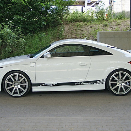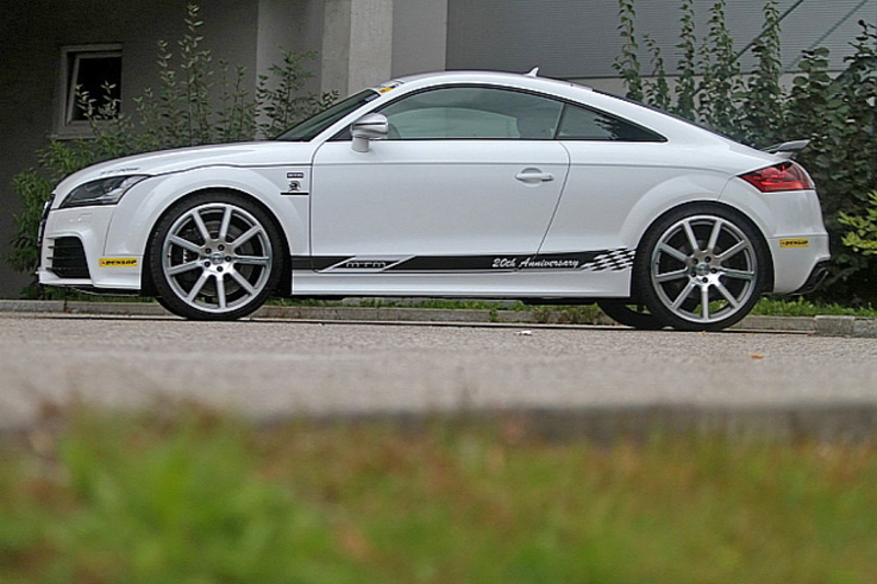 Значительным приростом поголовья "лошадок" тюнеры обязаны новым "мозгам", контролирующим работу мотора, новой турбине, а также более спортивной выхлопной системе. Кроме того, Audi TT-RS обули в 20-дюймовые колесные диски с экстремальными шинами Dunlop Sport Maxx.