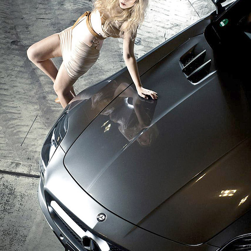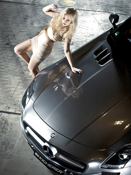 В ателье Status Design раскручивают свои машины с помощью реактивных самолетов, а в бюро Kicherer решили подогреть интерес к своей новинке, прибегнув к услугам обворожительной представительницы прекрасного пола. Накануне немцы показали свою версию Mercedes-Benz SLS AMG.