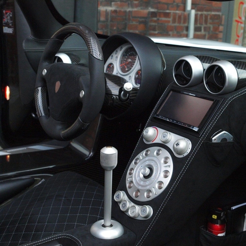 В салоне Koenigsegg CCR появилась отделка из алькантары, переделанная центральная консоль, новая мультимедийная система и систему слежения за давлением в шинах, данные от которой выводятся на экран на приборной панели.