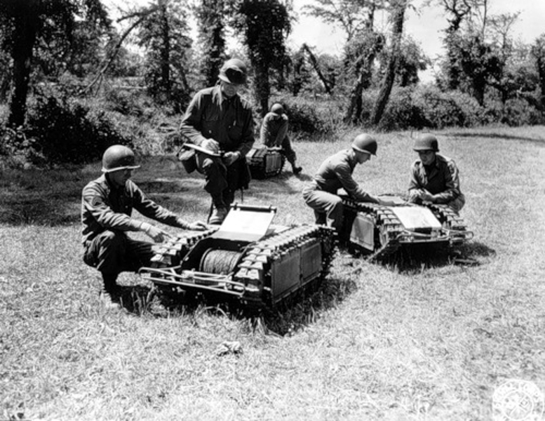 Также немцы придумали специальные тягачи, которые с помощью радиоуправления подвозили 66 или 88 килограммов взрывчатки к нужным целям (боевая техника и склады с боеприпасами союзников или мосты). С 1942 года было произведено почти 5 тысяч машин, названных Голиафами. Девайсы были крайне непрактичны, поэтому их применение тоже не было особо популярным. Но идея явно опередила свое время, став прабабушкой современных роботов.
