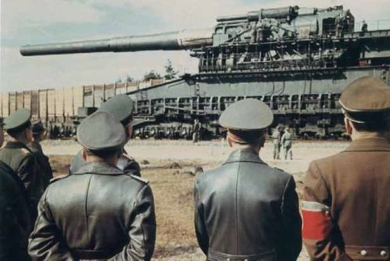 Нацисты Второй мировой - военные, которые всегда были озабоченны большим размером. Поэтому они построили пушки Дора и Густав. Размеры оружия ужасали даже обслуживающий персонал: калибр орудия составлял 80 сантиметров, один снаряд весил почти 5 тонн. Отличиться в реальном бою смог только Густав: выпущенные из него в 1942 году снаряды смогли разрушить склад боеприпасов Севастополя, спрятанный под 30-метровой толщиной скалы.