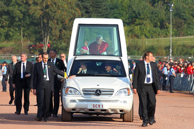 Папе Римскому Бенедикту XVI грозит штраф в размере ? 2,5 тыс. за то, что он не был пристегнут ремнем безопасности во время движения по одному из автобанов в Германии.