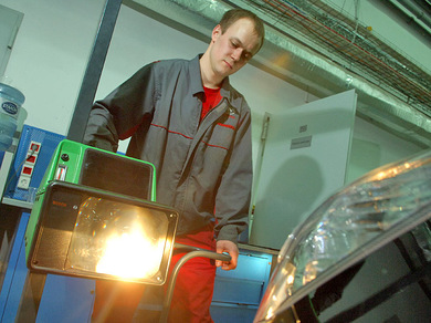 Кроме того, следует проверить, а при необходимости отрегулировать свет фар. На брендовых СТО проверяют также светопропускную способность стекол, в том числе и лобового. Старые, затертые дворниками стекла заставят автовладельца понервничать: техосмотр с такими стеклами на фирменных СТО не пройти (хотя на других станциях - вполне реально).