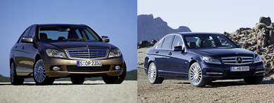 Третью позицию занимает Mercedes-Benz C-класса, внешние различия между генерациями которого, являются более-менее заметными. Во-первых, новичка легко узнать по "вздернутым" вверх краям головной оптики, более массивной радиаторной решетке и полоскам светодиодов в переднем бампере.