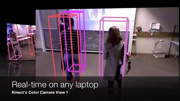 Они подключили два контроллера Kinect к плате видеорегистратора и запустили программу слежения за людьми (написана на C/C+ с библиотеками OpenCV).
