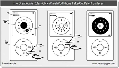 В заявке описан способ набора телефонного номера на навигационном колесе Click Wheel, фирменном компоненте большинства плееров "яблочного семейства".