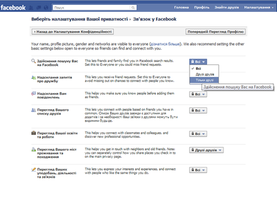 2. С помощью пункта "Просмотр" вы можете просмотреть, кто имеет право искать вас на Facebook