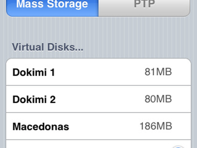 USB Drive также обладает возможностью использовать iPhone в качестве флеш-накопителя. Особенность программы в том, что она может создать несколько виртуальных дисков и использовать их в режиме USB MassStorage-накопителя, а это означает, что вы вручную можете выделить память своего телефона под свои нужды, не используя все доступное свободное место. Теперь вы просто включаете эту программу и подсоединяете к компьютеру при помощи телефонного шнура - и ваш iPhone будет определяться как обычная USB-флешка.