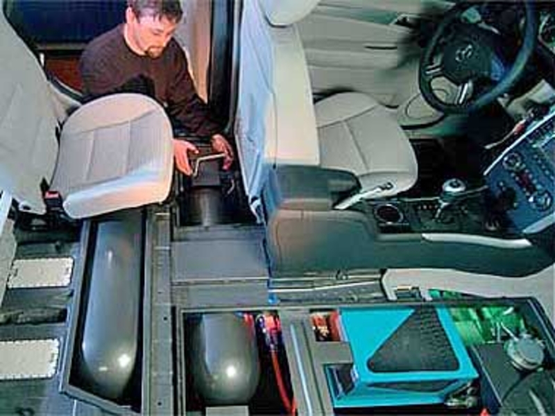 Объем свободного пространства салона и багажника от топливных ячеек не пострадал, поскольку немцы расположили их под днищем. Как и в стандартном B-классе обїем багажного отделения составит 416 литров. Активная и пассивная безопасность водородного автомобиля также не пострадала - специалисты Mercedes-Benz провели около 30 краш-тестов новинки и доказали его безопасность.