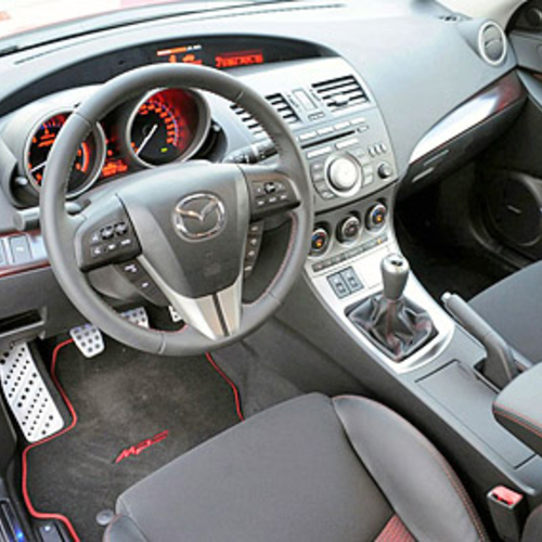 Салон нового поколения Mazda3 MPS окрасят в специальный черный цвет с красными вставками. Кроме того, в салоне появятся алюминиевые педали, жидкокристаллический датчик наддува и спортивные сидения. Также новинка получит продвинутую аудио-систему Bose с 10 динамиками, мультиинформационный монитор и возможность подключения к разным устройствам с помощью Bluetooth.