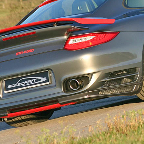 Чтобы улучшить динамические показатели и мощность, специалисты тюнинг-ателье speedART перепрограммировали блок управления двигателем суперкара, а также установили новую выхлопную систему. В результате мощность 3,8-литрового двигателя Porsche 911 Turbo выросла на 80 л.с. - до 580 л.с. Максимальный крутящий момент увеличился на 120 Нм и теперь составляет 720 Нм.