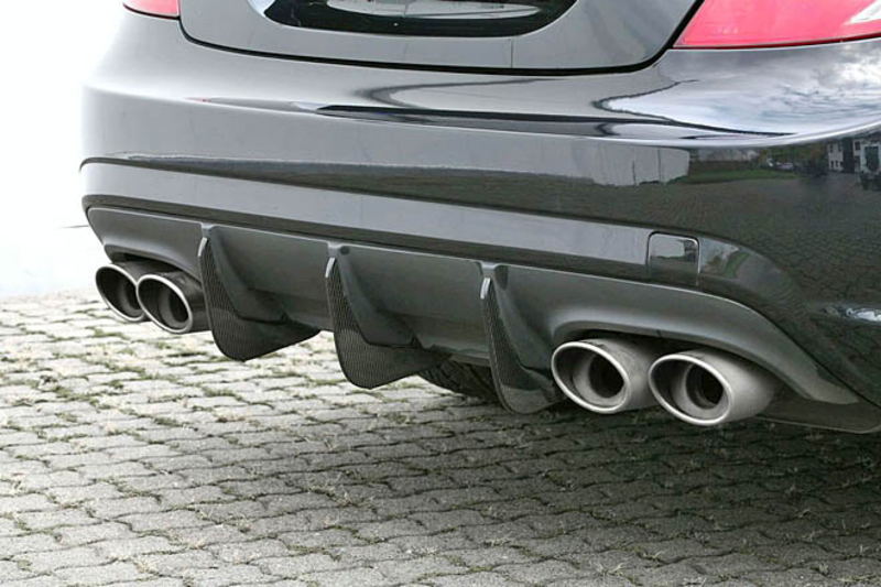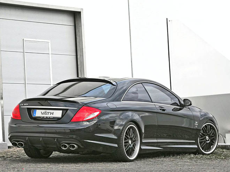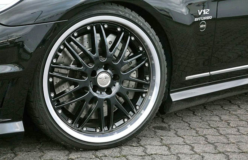 Из внешних доработок Mercedes-Benz CL65 AMG можно выделить мощные передний и задний бамперы, накладки на пороги, карбоновые элементы и небольшой спойлер. Кроме того, на купе установили колесные диски радиусом 20 дюймов, обутые в шины Vredestein, предназначенные для езды со скоростью до 270 км/ч.