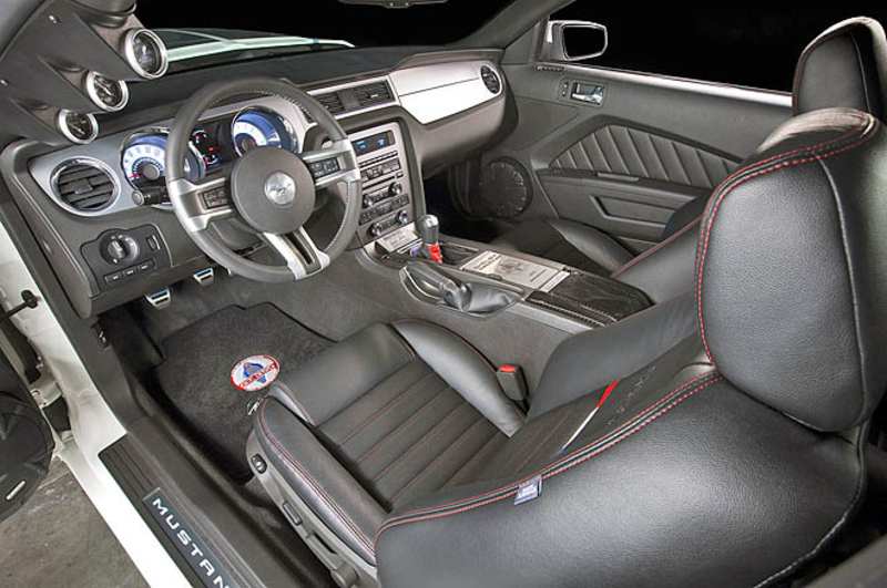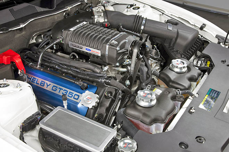 Основные новшества Shelby GT350 затронут его техническую сторону. Благодаря установке фирменного механического нагнетателя мощность 5-литрового мотора удалось увеличить с 412 л.с. до 500 л.с. Силовой агрегат будет работать в паре с 6-скоростной «механикой». Справиться с такой «прытью» автомобилю помогут доработанные тормоза Baer.