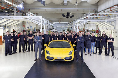 Самая компактная модель в линейке автомобилей Lamborghini является и самой популярной и коммерчески успешной. Производство автомобиля стартовало в 2003 году. Юбилейным стал автомобиль в желтом цвете Midas с 5,2-литровым силовым агрегатом V10 мощностью 560 л.с.