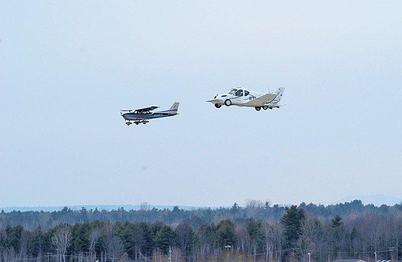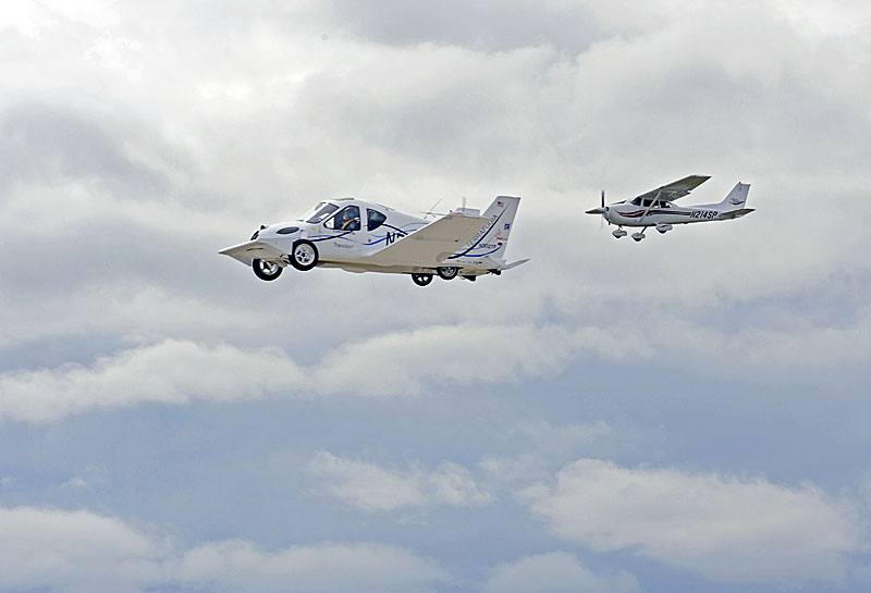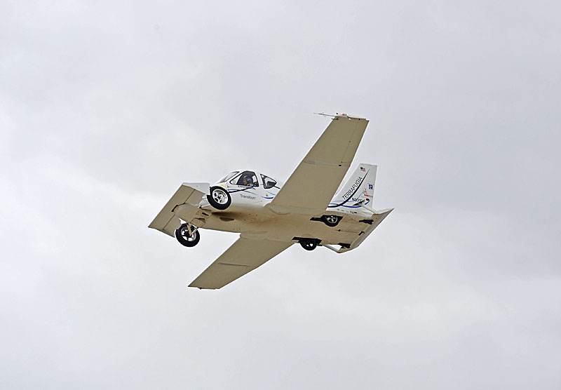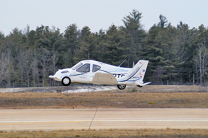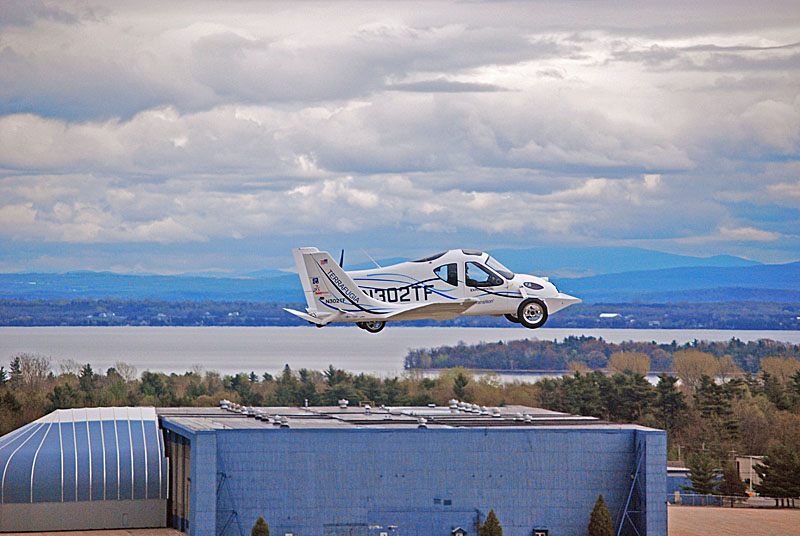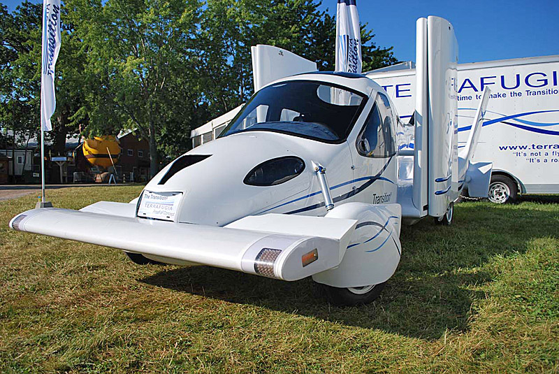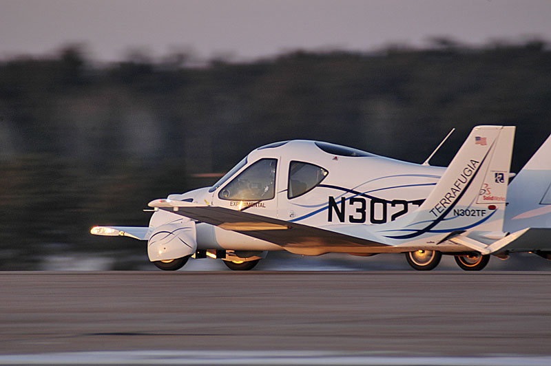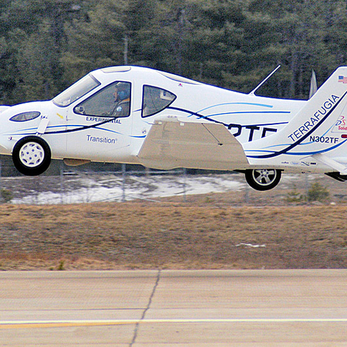 Terrafugia представляет собой двухместный автомобиль с дополнительными аэродинамическими элементами, в том числе, крыльями, который способен передвигаться по воздуху на расстояние до 640 км со скоростью около 185 км/ч. В качестве горючего переднеприводная (на дороге) новинка использует обычный бензин.