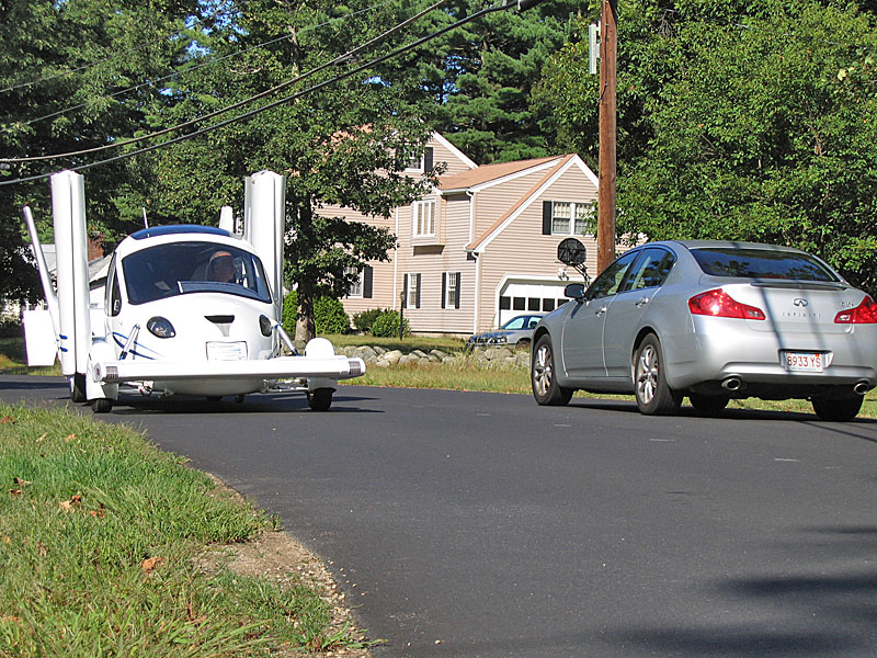В данный момент специалисты Transition Roadable Aircraft еще решают вопросы с весом автомобиля, поскольку полеты разрешены лишь транспортным средствам, вес которых больше 650 кг. Достичь такой массы американцы намерены за счет установки в летающий автомобиль Terrafugia подушек безопасности, сминаемых зон безопасности и прочего.