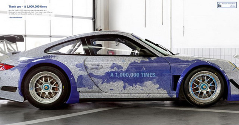 В честь радостного события, миллиона поклонников Porsche на Facebook, немецкий концерн решил выпустить автомобиль, на корпус которого нанесены имена 27 тыс. участников официальной группы.