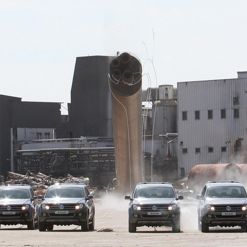 В британском городке Рединг четыре пикапа Amarok смогли снести 67-метровую трубу, для разрушения которой ранее хотели привлечь 40-тонный кран. Но, как оказалось, 11,2 тонн (суммарный вес четыре пикапов) оказалось достаточно для столь сложного демонтажа.