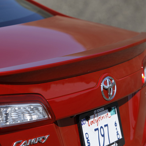В первую очередь стоит отметить обновленный дизайн автомобиля. Если сбоку можно узнать уже знакомый силуэт Camry, то задняя часть совершенно новая. Так, в компании полностью переработали крышку багажника и задние фонари.