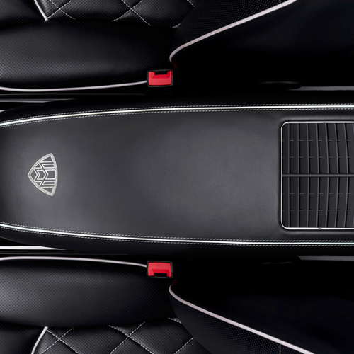 На передней панели авто выгравирован автограф создателя марки, а на подлокотниках лазером выжгли эмблему бренда. Салон обшит эксклюзивной черной и серой кожей. Дверные панели могут быть покрыты карбоном, или рояльным лаком.