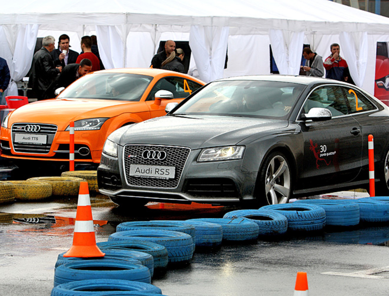 В его рамках любители "окольцованной" марки могли протестировать новую компактную модель премиум-класса с ярко выраженным спортивным характером Audi A1, а также настоящие спорткары Audi TTS, S5 Sportback и RS5.