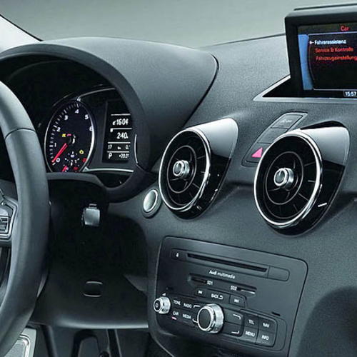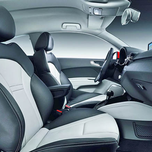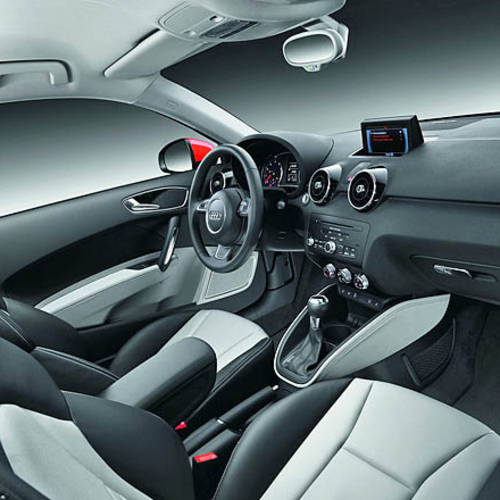 В салоне Audi A1 также получился довольно экстравагантным. Производитель уделил максимальное внимание деталям — к примеру, дефлекторы климат-контроля сделали в виде сопел турбин. В целом отделку салона автомобиля можно будет сделать максимально индивидуальной, благодаря широкому списку дополнительных цветовых решений.