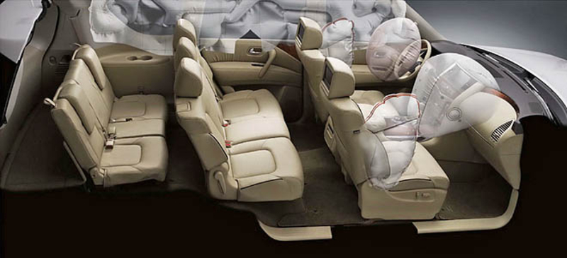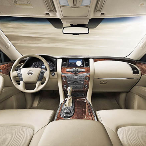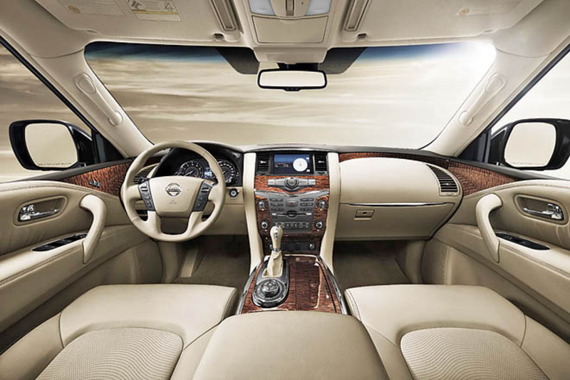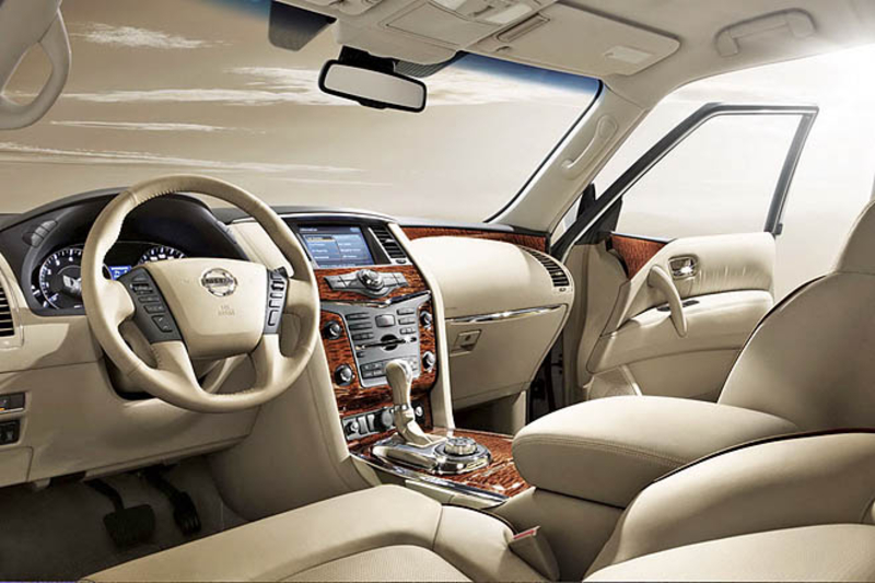 В салоне Nissan Patrol можно найти множество инноваций, многие из которых также свидетельствуют о важности арабского рынка для японцев. Здесь есть специальная система кондиционирования воздуха, с помощью которой создается прослойка из воздуха между стеклом и пассажиром, что препятствует чрезмерному нагреванию воздуха в салоне.