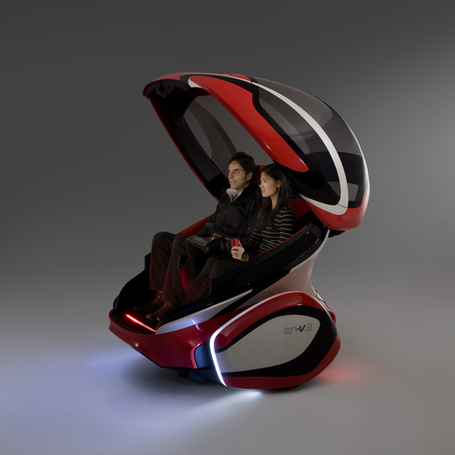 Результатом их труда стали концепты EN-V, длина и ширина которых в среднем составляет 1,2 метра, а высота - около 1,83 метра. Миникары имеют два посадочных места и приводятся в движение с помощью электромоторов небольшой мощности, расположенных непосредственно возле колес. В качестве источника для моторов используется комплект литий-ионных батарей.