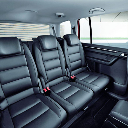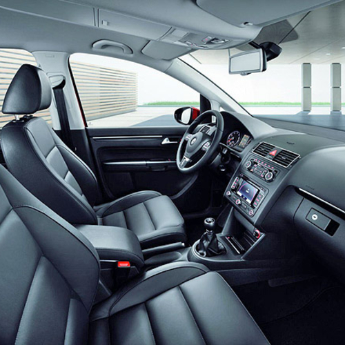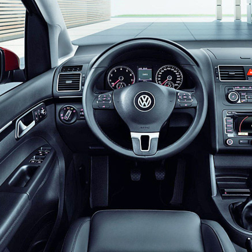 Внутреннее убранство автомобиля также изменилось. Новый Volkswagen Touran получил новое мультифункциональное рулевое колесо в стиле того же Golf. В отделке салона теперь используются хромированные элементы. Кроме того, изменилась форма передних подголовников, из-за чего улучшилась обзорность вперед для задних пассажиров.