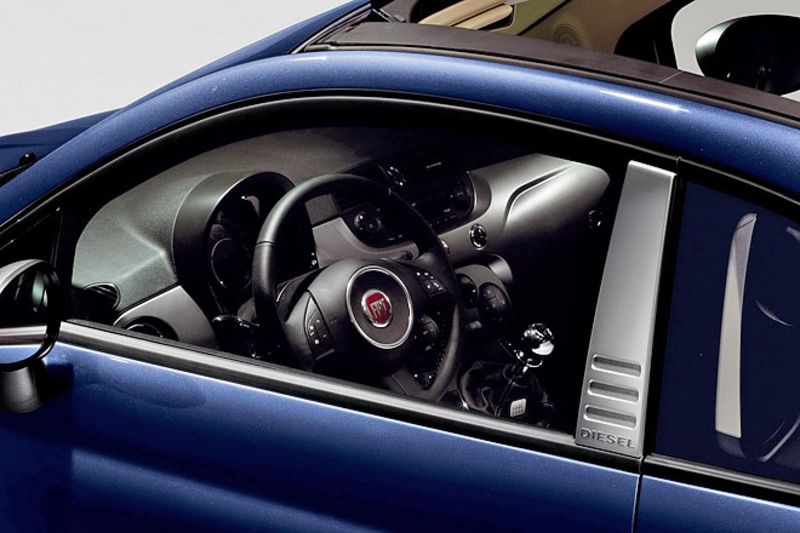 Премьера кабриолета Fiat 500C, созданного совместно с известным производителем джинсов компанией Diesel, состоялась в The Fiat Cafe в Японии. От обычной версии миникара новинка отличается специальным цветом кузова, 16-дюймовыми колесными дисками, желтыми тормозными суппортами и хромированными вставками.