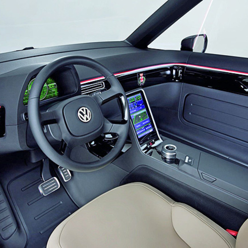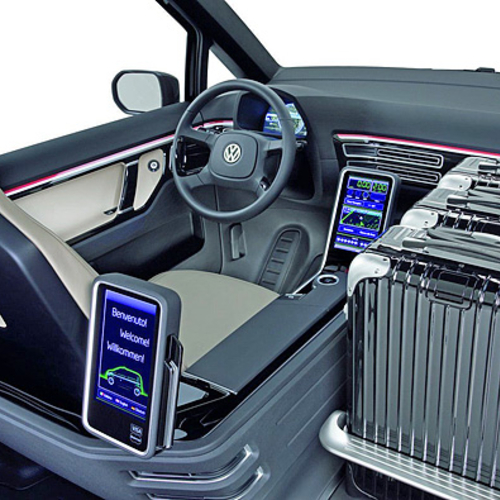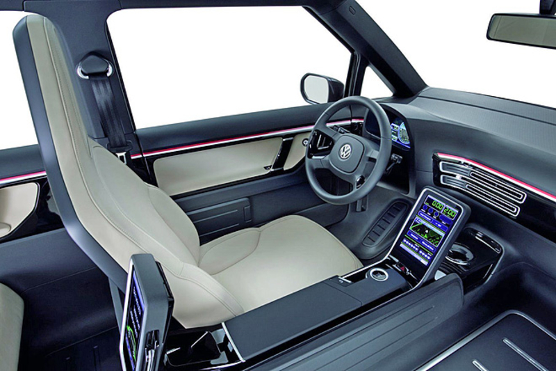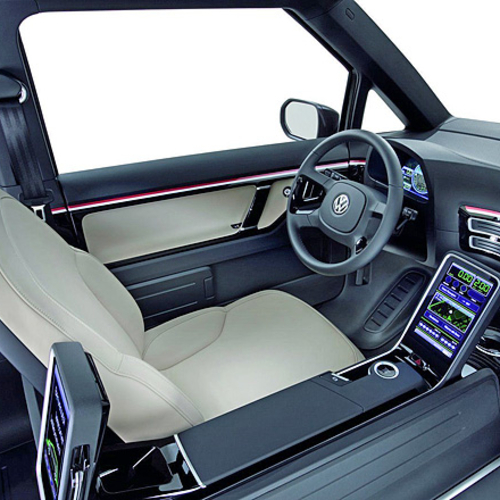 В салоне Volkswagen Milano есть два сенсорных монитора диагональю 8 дюймов. Первый предназначен для водителя, и на него выводятся данные от счетчика километража, показания дорожного компьютера и кнопка открытия пассажирской двери. Пассажиры с помощью своего монитора могут расплатиться кредиткой, получить необходимую информацию и регулировать климат-контроль.